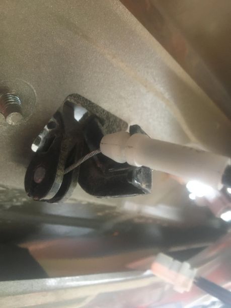 Remove the cable that goes from the latch to the outer trunk handle. You pop the white plastic guide out of the black bracket and twist the cable and remove the little lead catch from the hole it is in. Don't kink the actual metal cable, as this can cause damage.